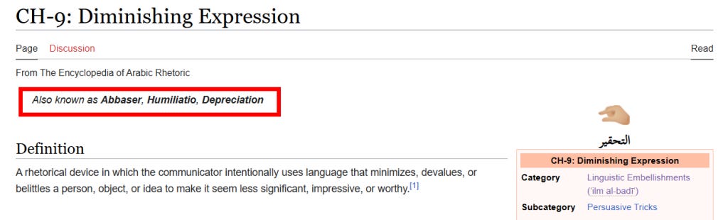 Or CH-9: Diminishing Expression would be listed as “Also known as Abbaser, Humiliatio, Depreciation.”